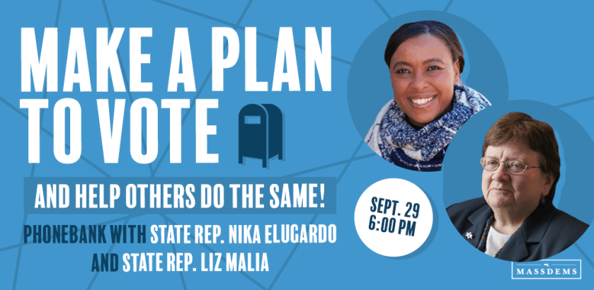 Members of the Boston Ward 10, 11, 19, and 20 Democratic Committees will be participating, and we invite community members to join us. This is a virtual phonebank; please register before September 29 using this link. Be sure to join by 6:00 pm to hear introductions from the Representatives, get training on how to make calls, and to get your list of voters.