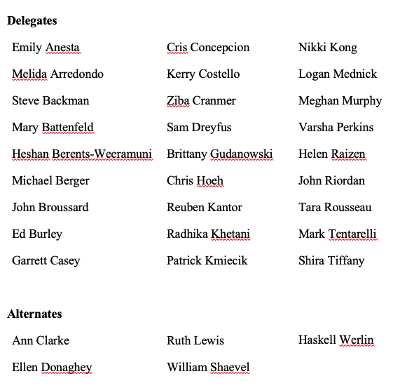 Many thanks to the over 100 voters, guests, and candidates for office who attended the caucus, and for the patience of voters and delegate candidates who waited through the technical issues that extended the voting process. We all look forward to meeting in person next year!